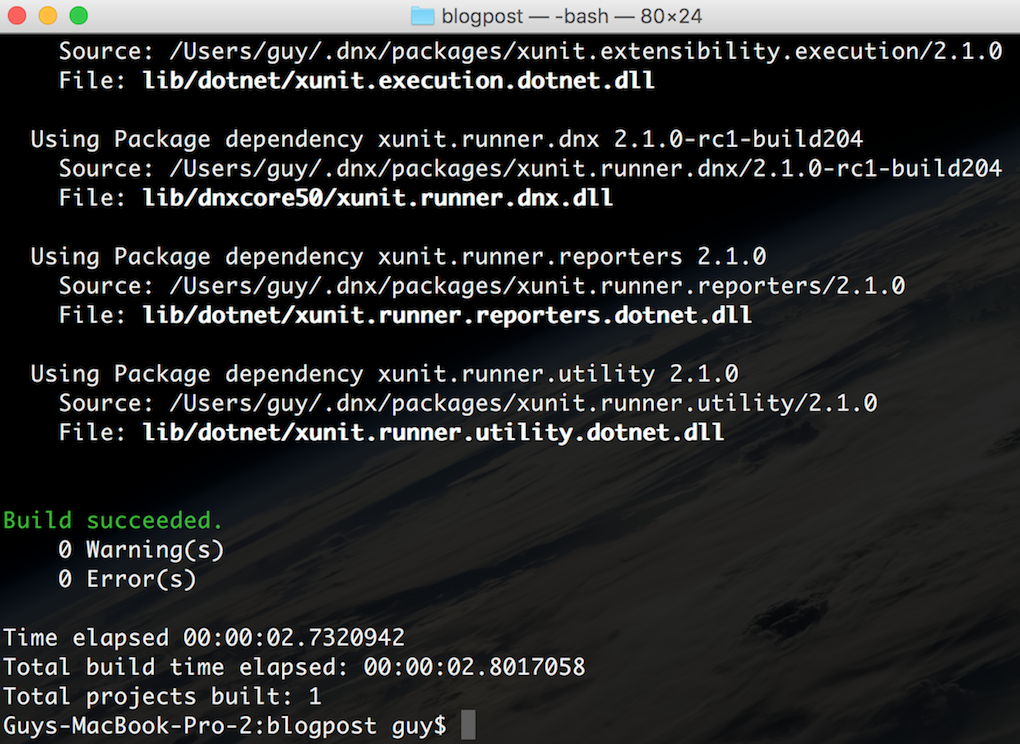 If you've been playing around with the cross platform asp.net 5 bits (currently RC1) you will no doubt be aware of how difficult it can be to get things playing nicely together. My first task was to get a test framework configured with command line execution.